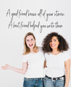 We all have those great stories we love telling. Maybe it was a perfect trip, an embarrassing moment, an event that had us laughing in tears. The best stories are the ones that continue to fill up the chapter of friendship in the book of life. Keep writing stories together! -